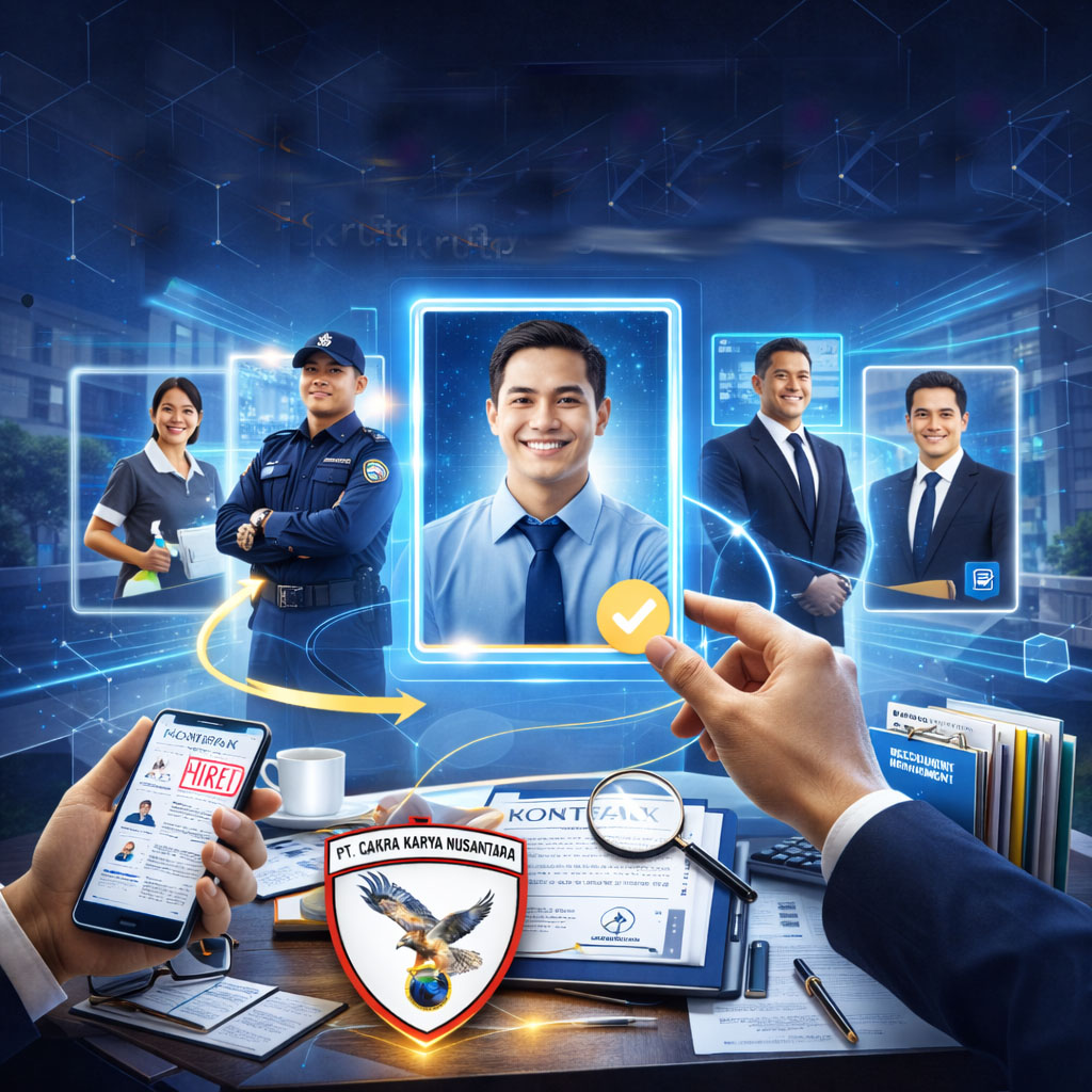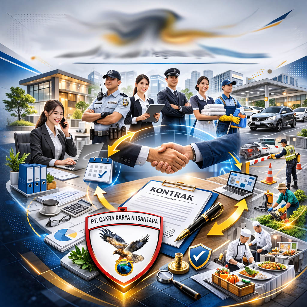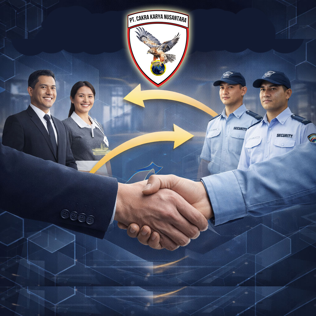 PT. Cakra Karya Nusantara, Perusahaan Outsourcing Tenaga Kerja. Solusi Lengkap Sumber Daya Manusia untuk Berbagai Kebutuhan Bisnis Anda. Lebih dari Sekadar Keamanan — Kami adalah Mitra SDM Terpercaya Anda.